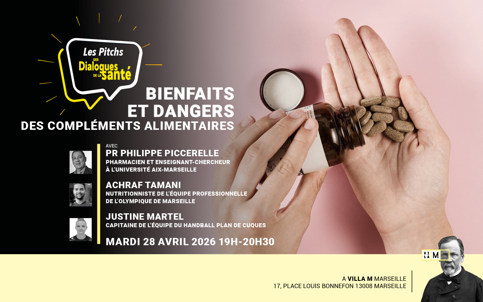 Ce pitch réunira le Pr Philippe Piccerelle, professeur des universités à la Faculté de Pharmacie de Marseille, Achraf Tamani, nutritionniste de l’équipe professionnelle masculine de l’Olympique de Marseille, et Justine Martel, capitaine de l’équipe du Handball Club de Plan-de-Cuques.
